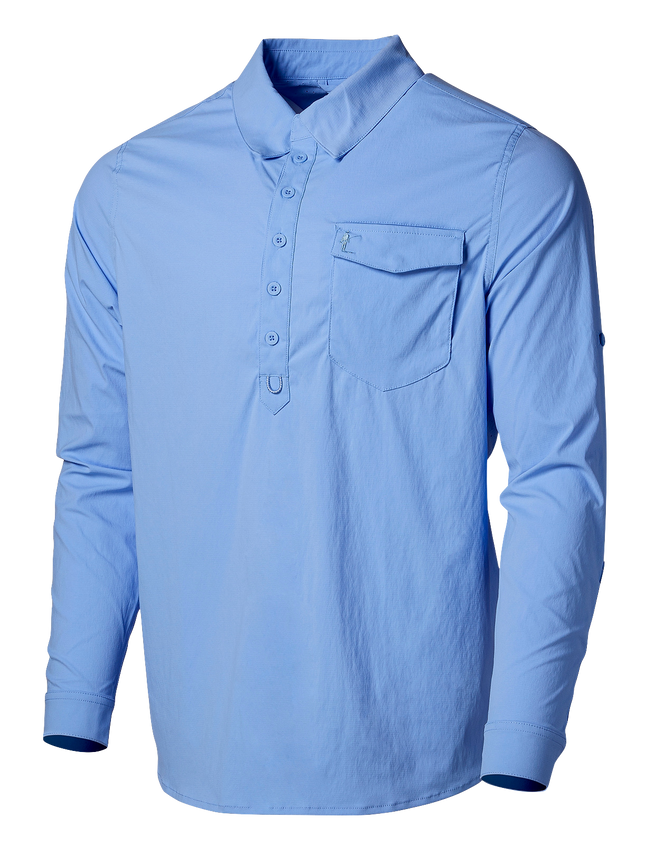 Richard Proenneke was a naturalist and wilderness enthusiast known for his many expeditions living solitary in the Alaskan wilderness. Dick had an enormous impact on rural Alaska and sharing his love of the outdoors through writing, recording, and photography. To honor this true Icon of the Last Frontier, we designed this performance polo to showcase the man that lived in pristine solitude. This shirt is made with our performance nylon blend for a lightweight feel, odor control, and moisture-wicking technology to make sure you are always comfortable in any environment. Our Performance Nylon Ripstop fabric blends comfort, strength, and flexibility. Fabric features include Quick Dry & Water Resistance, Wicking, Antimicrobial & UPF 50 technology. Relaxed fit, Half Placket with Cape Back. Perforated lined center back vent for breathable and maximum cooling. Long Sleeve Collar with Snap Down Collar. Roll-up Sleeves with tab holders. Back Collar has full coverage Neck Sun Guard. Perforated underarm vents, for breathable and maximum cooling. Multi-use left chest pocket, with flap closure. Double entry chest pocket. Machine wash & dry. See garment label for details.